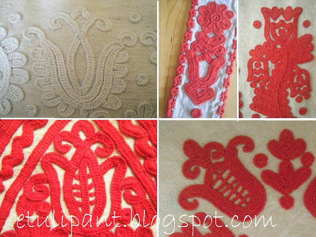 Egyszer tartottam egy "kalotaszegi" kézműves napot az iskolánkban és egyet a barátnőmnél. Sokat készültem rá, gyűjtöttem, másoltam a mintákat. Azóta is, ahányszor előveszem a gyűjteményemet, szinte mindig megdöbbenek azon, hogy találok benne új formákat, részleteket, amelyek mást és mást "mesélnek" nekem. Igaz, hogy szépek a madarak, rózsák, majoránnák, mákok, körték, szívek, de a tulipántok ... gyűjteményemnek különleges ékességei.