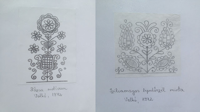 Kalotaszegi népi díszítő motívumokat szedtem csokorba a Kastélymúzeum virágünnepére. Már a régi mintaelnevezések is olyan szépek, magyarosan szépek, hát még a minták ... kisrózsás, tulipántos, majoránnás, madaras, szilvamagos, horgas, kétszíves, kerekes, patkós, mákos, hétvirágos, kistaréjos, mákrózsás, fenyőfás, életfás, pápaszemes, makkos, búzakalászos, ugorkás, kiságas, lóhereleveles, csillagos kisrózsás ...